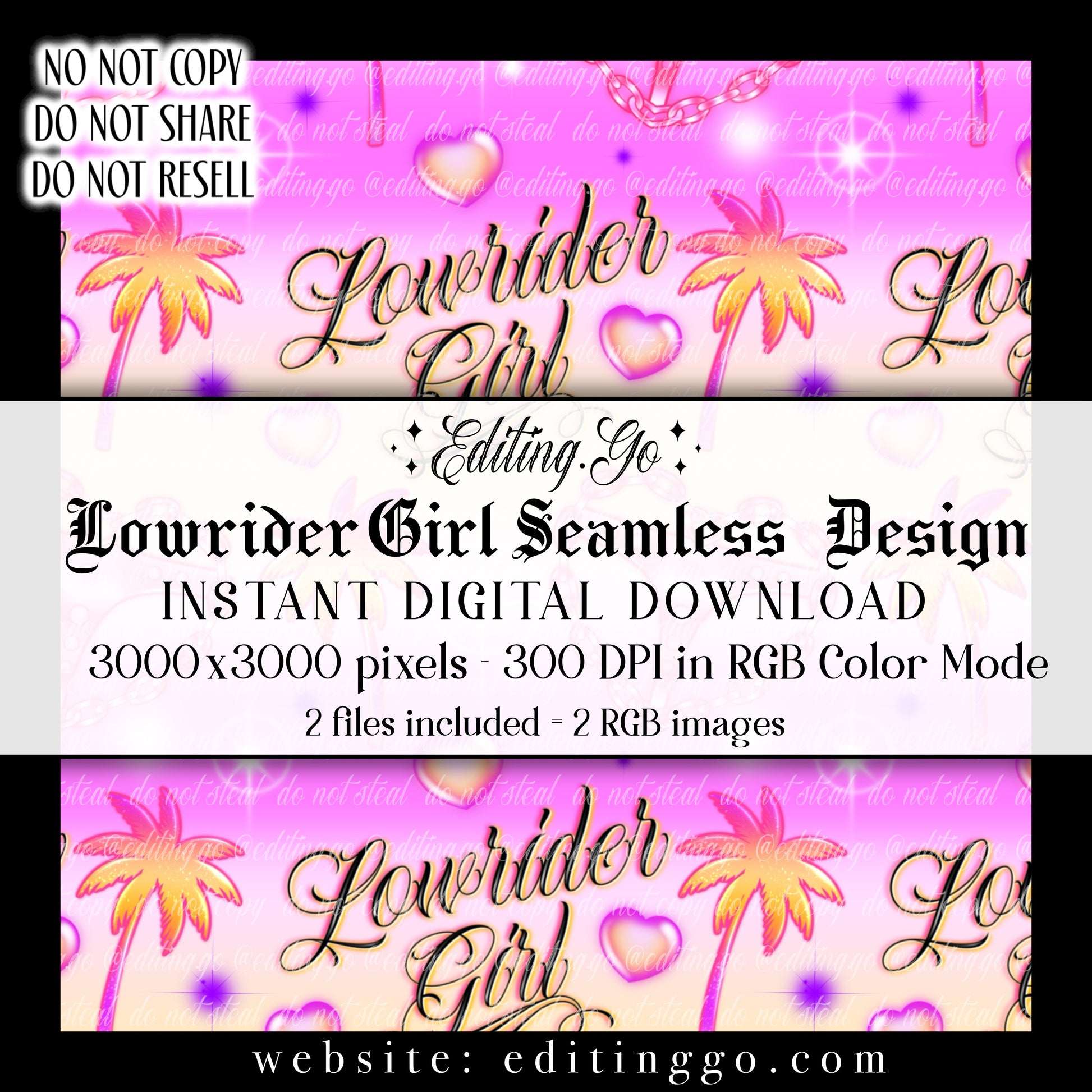 -Premade seamless designs will be resold to other customers by Editing.Go!