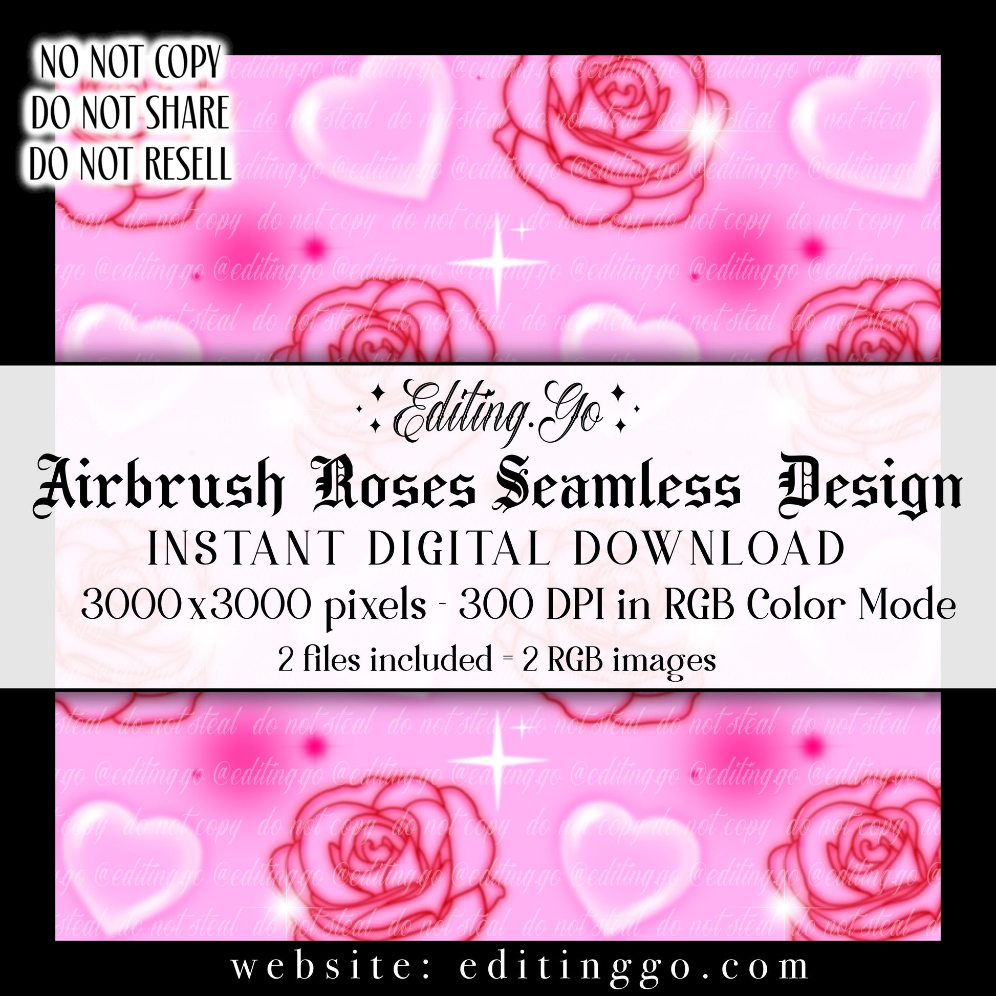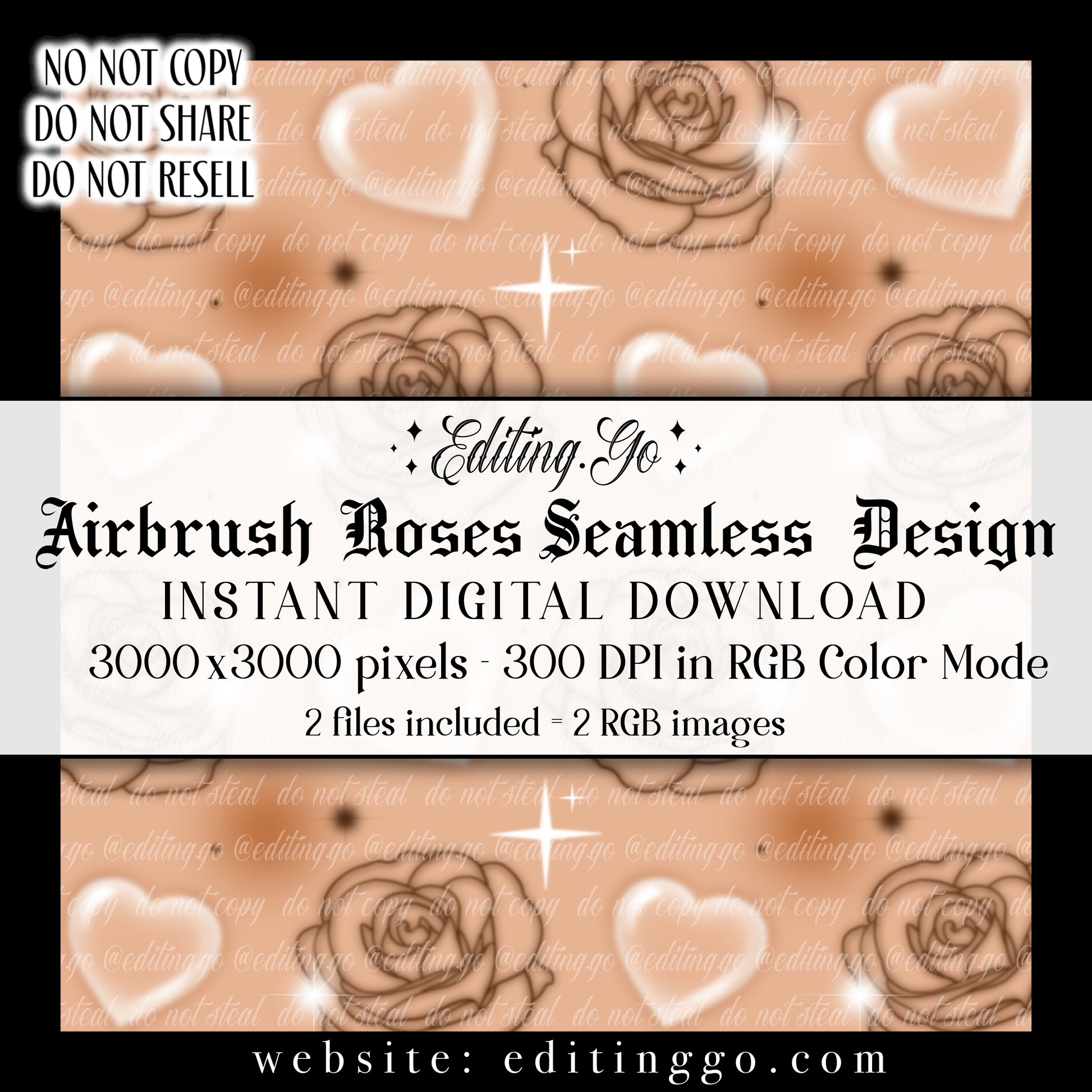 Airbrush Roses Seamless Pattern Repeat Digital File: Perfect for fabric, faux leather/canvas, paper crafts, scrapbooking printing, tumblr/tumblr wrap, tapestries/backdrops, notebook, parties, and so much more! ✨