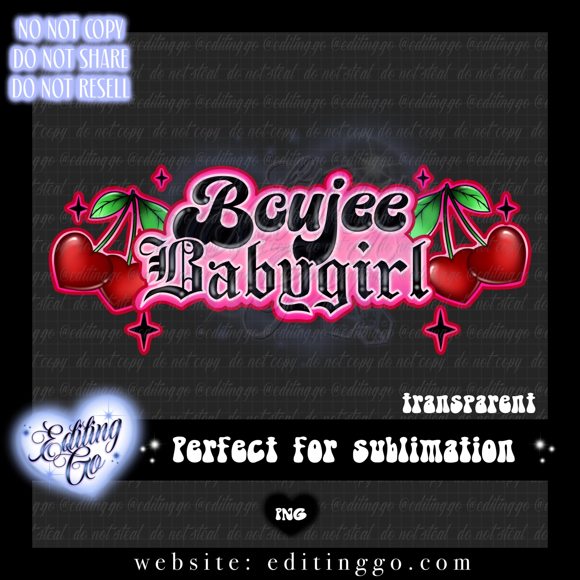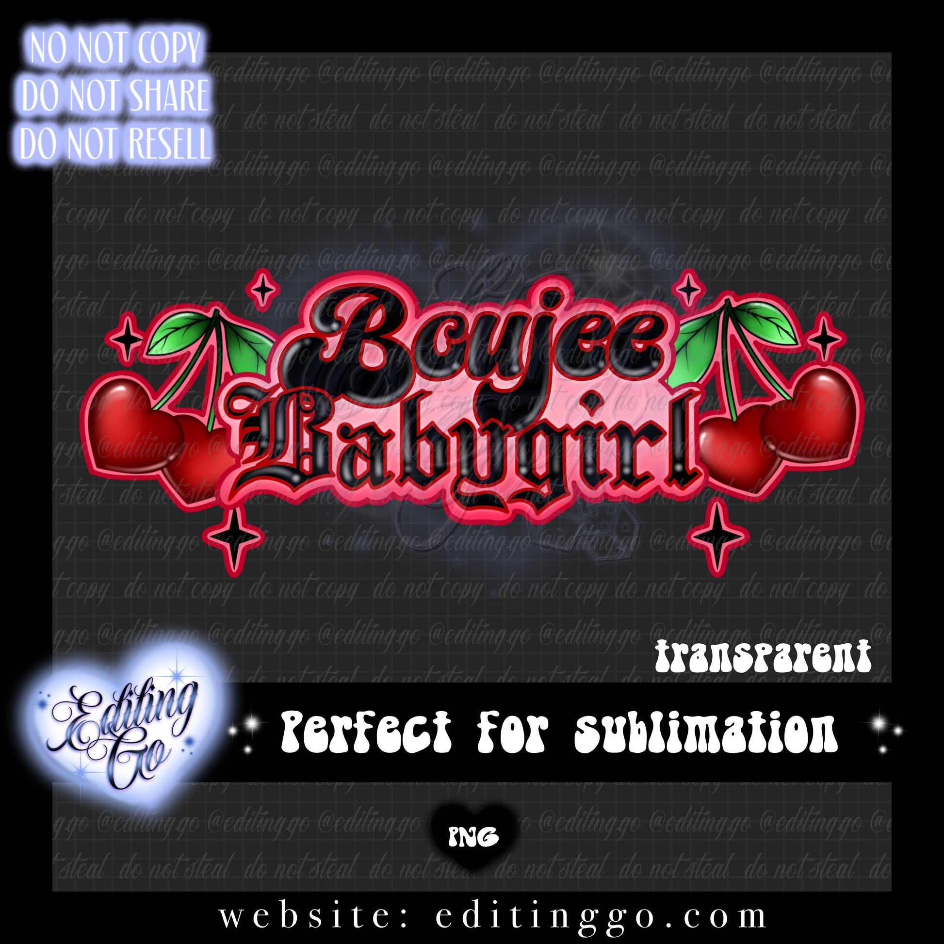 -All premade designs will be resold to other customers by Editing.Go!