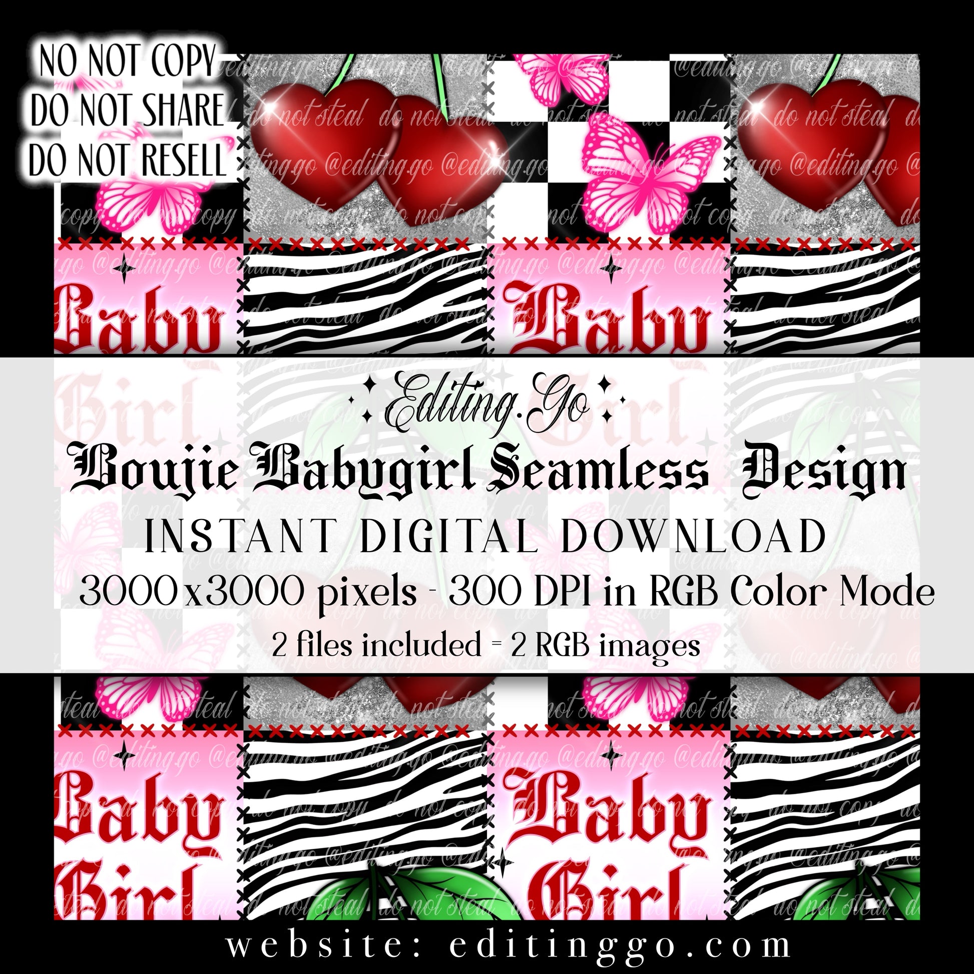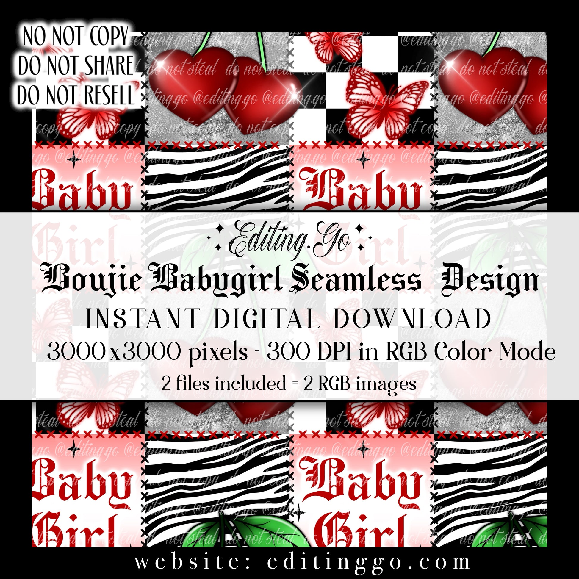 -Premade seamless designs will be resold to other customers by Editing.Go!