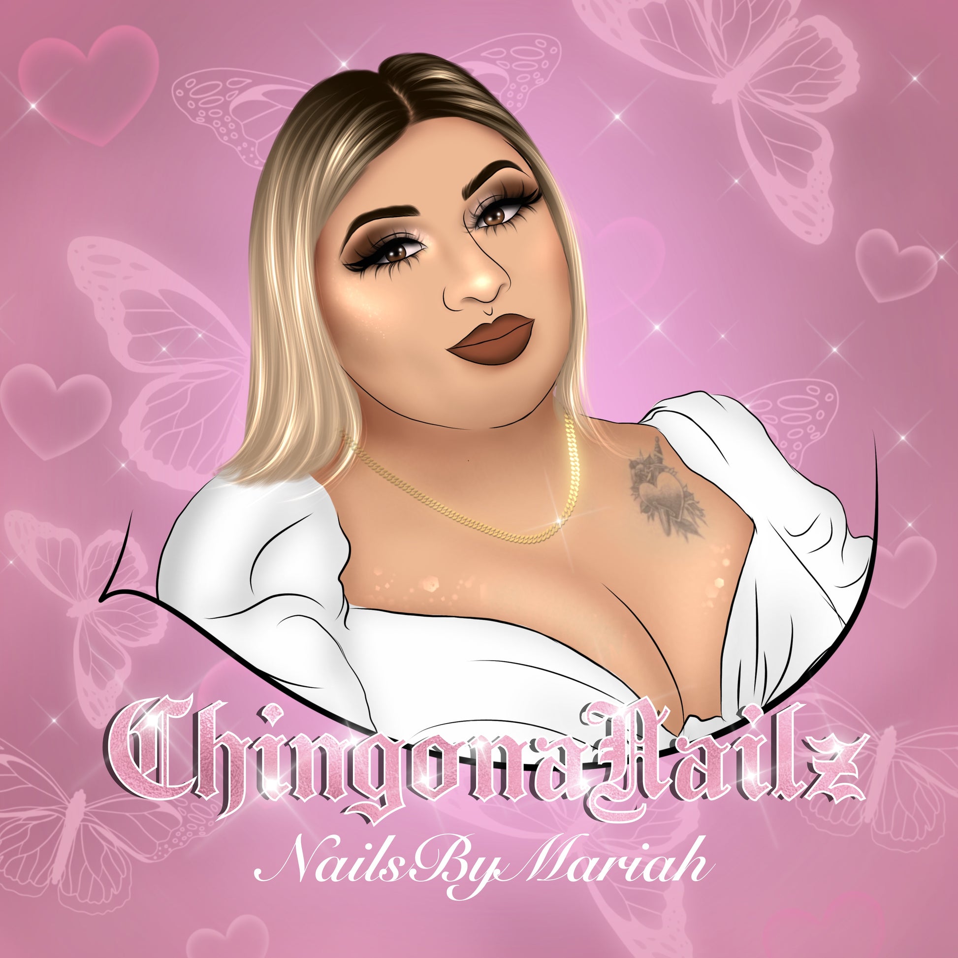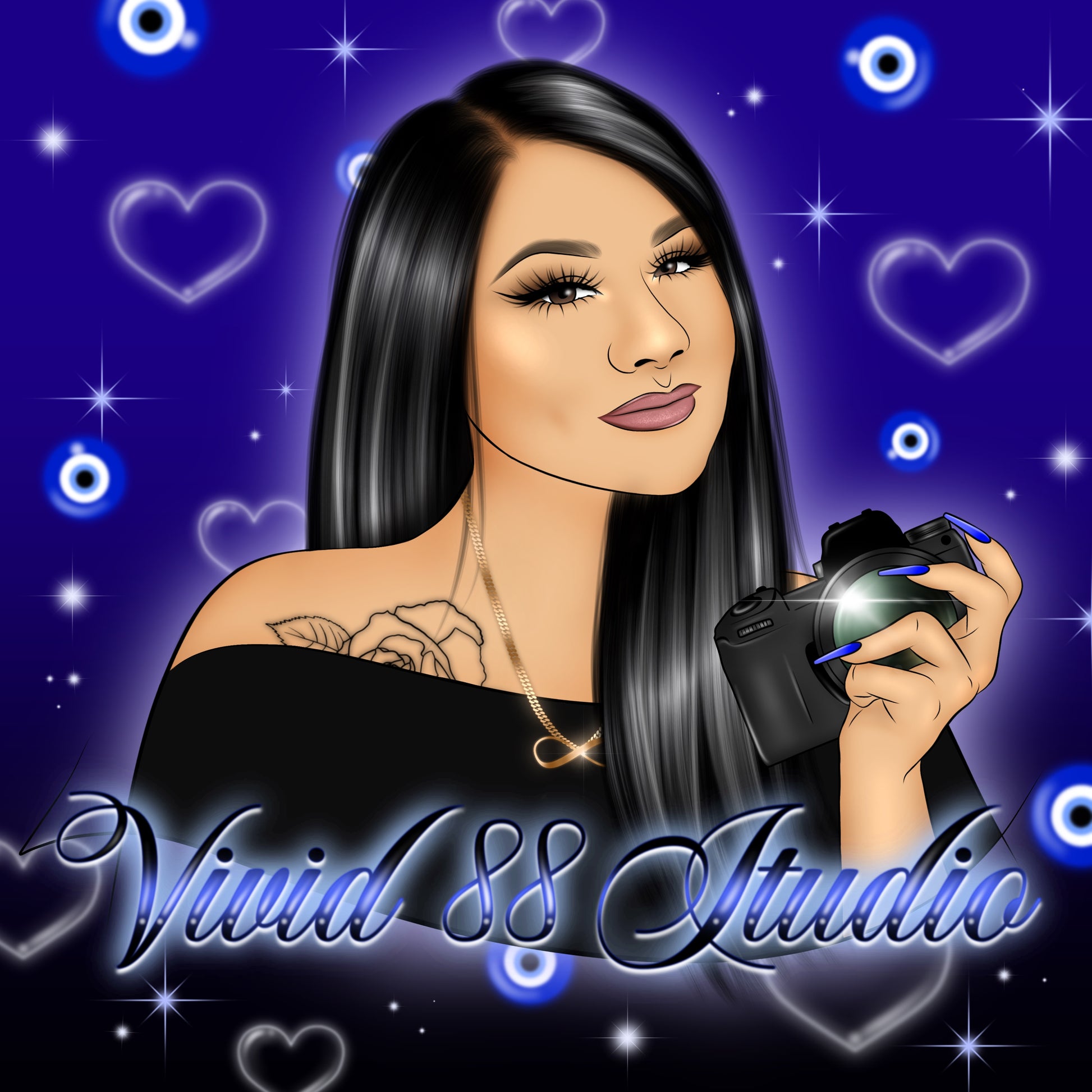 Get a beautiful cartoon design along with a text based logo for your business! Looking for extra bling or airbrush with beautiful details and highlights? You got it! You can choose your reference for backgrounds, color of facial features, makeup details, etc on your cartoon