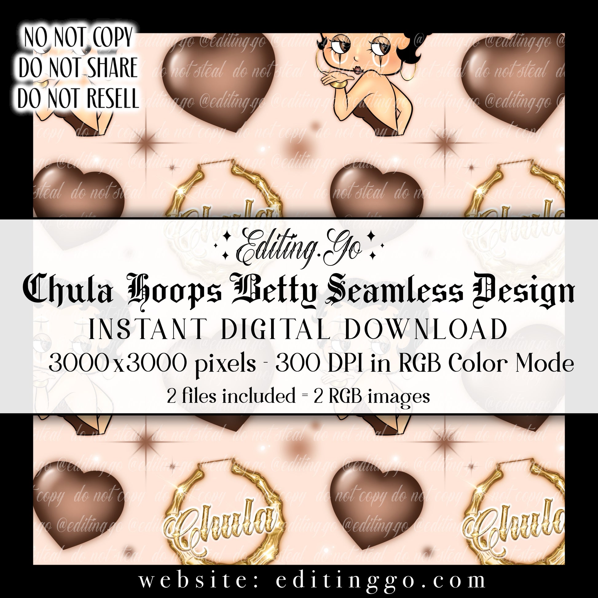 -Premade seamless designs will be resold to other customers by Editing.Go!