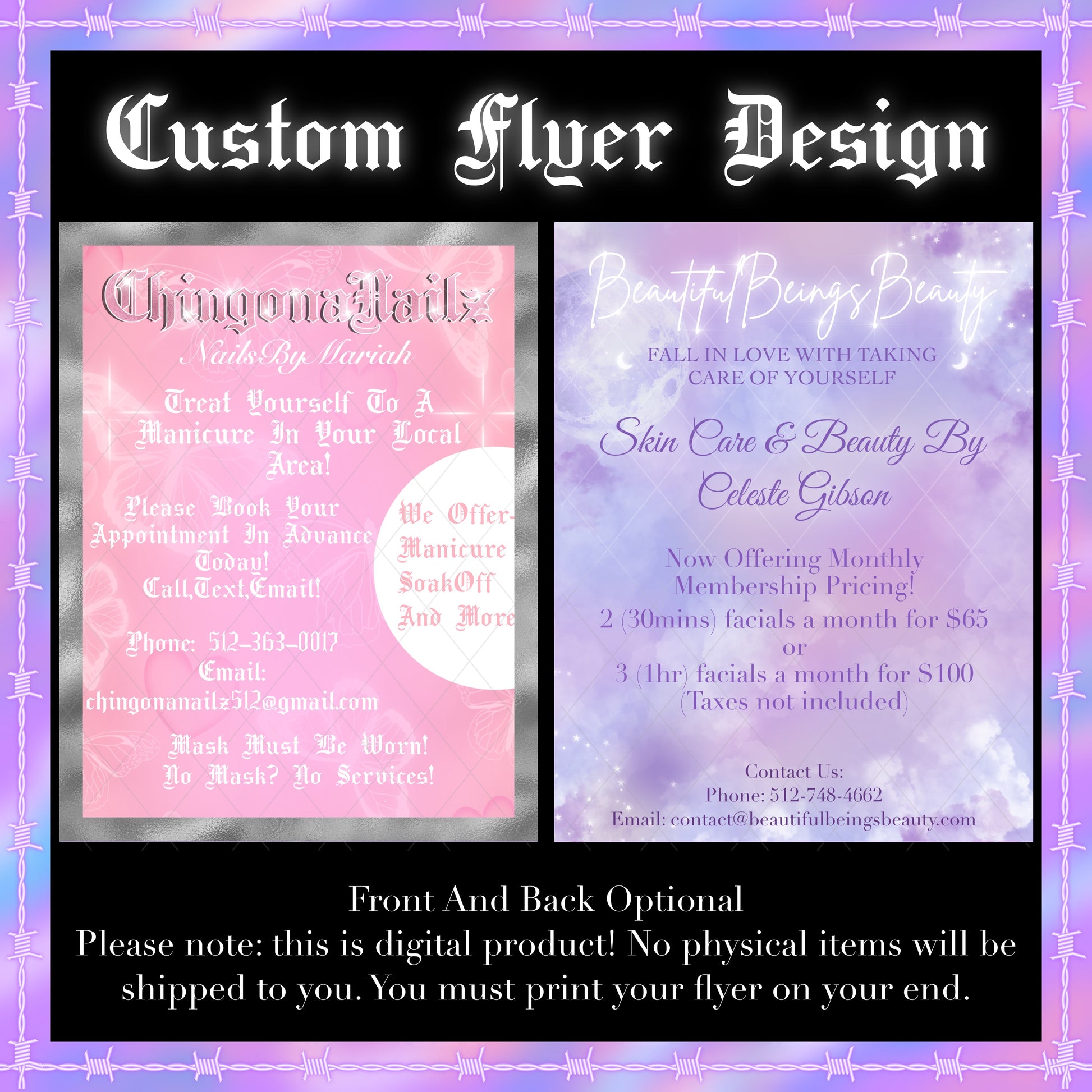 Your files will include digital flyer with front/back optional in JPG and PDF formats