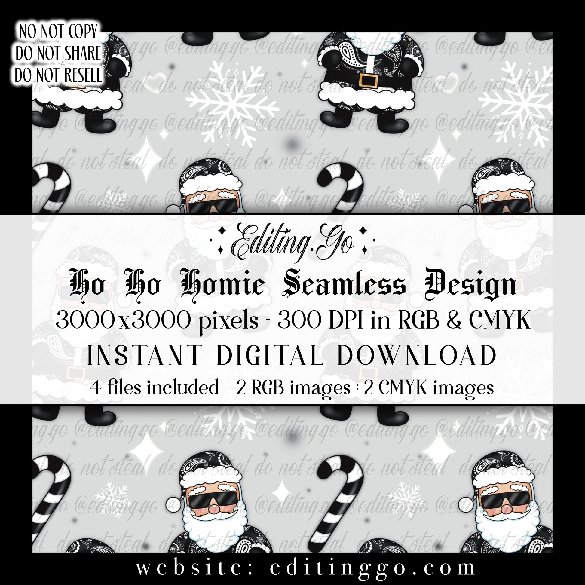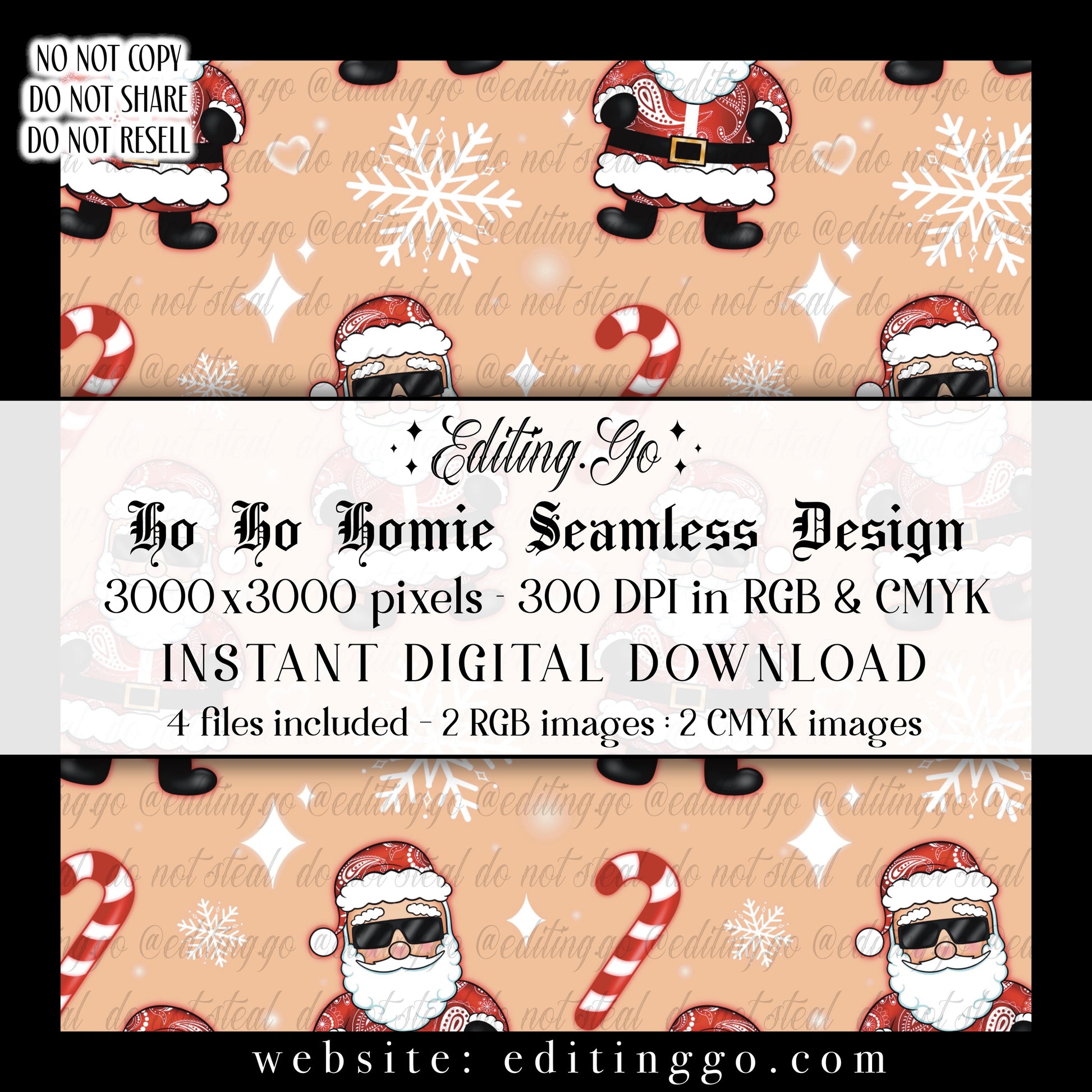 Ho Ho Homie Christmas Seamless Pattern Repeat Digital File: Perfect for fabric, faux leather/canvas, paper crafts, scrapbooking printing, tumblr/tumblr wrap, tapestries/backdrops, notebook, parties, and so much more! ✨