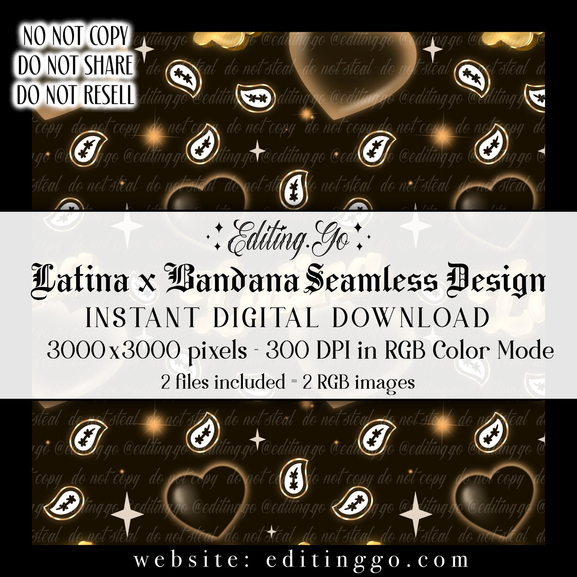 Golden Latina with Bandana Seamless Pattern Repeat Digital File: Perfect for fabric print, faux leather/canvas, paper crafts, scrapbooking printing, tumblr/tumblr wrap, tapestries/backdrops, notebook, party favors, and so much more! ✨