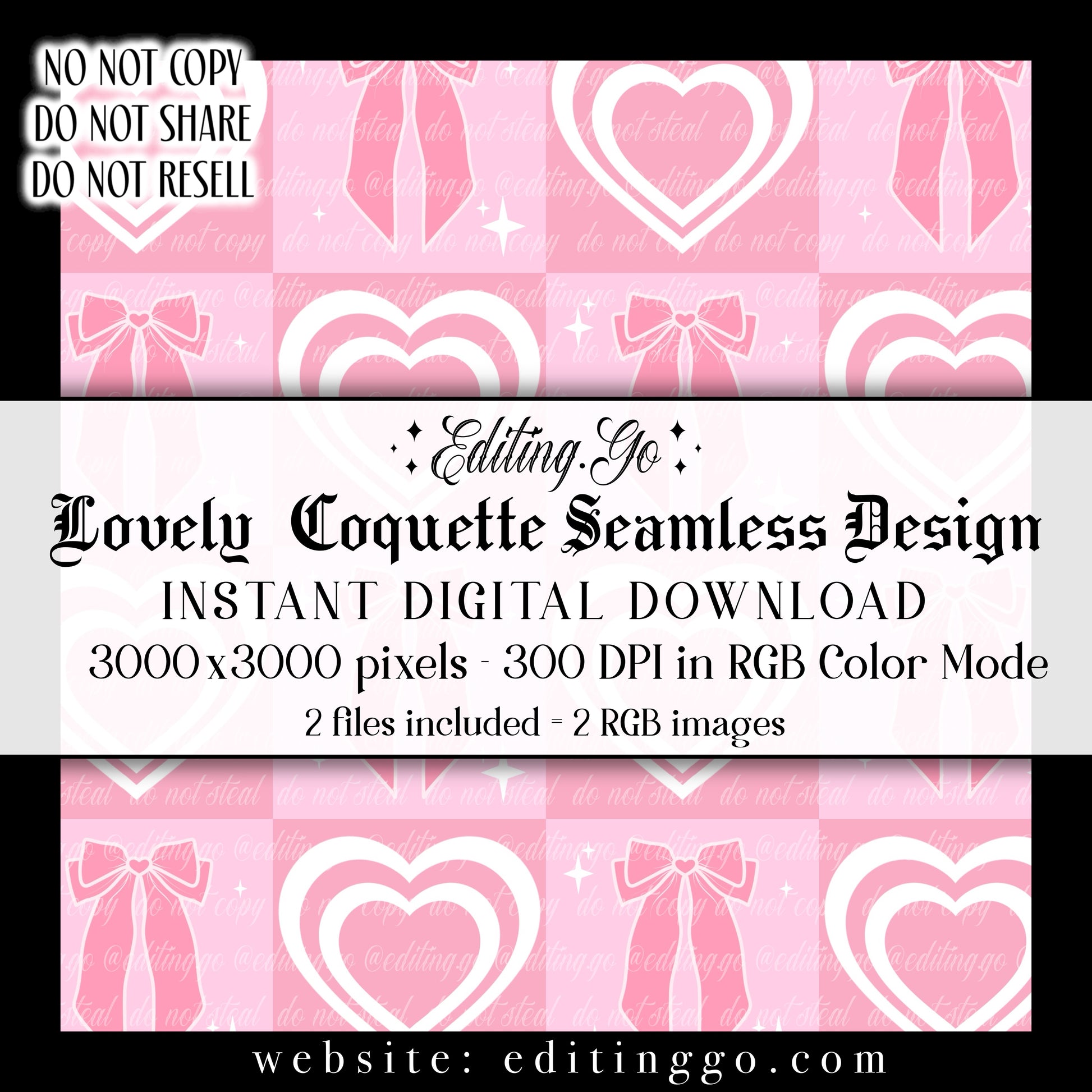 -Premade seamless designs will be resold to other customers by Editing.Go!