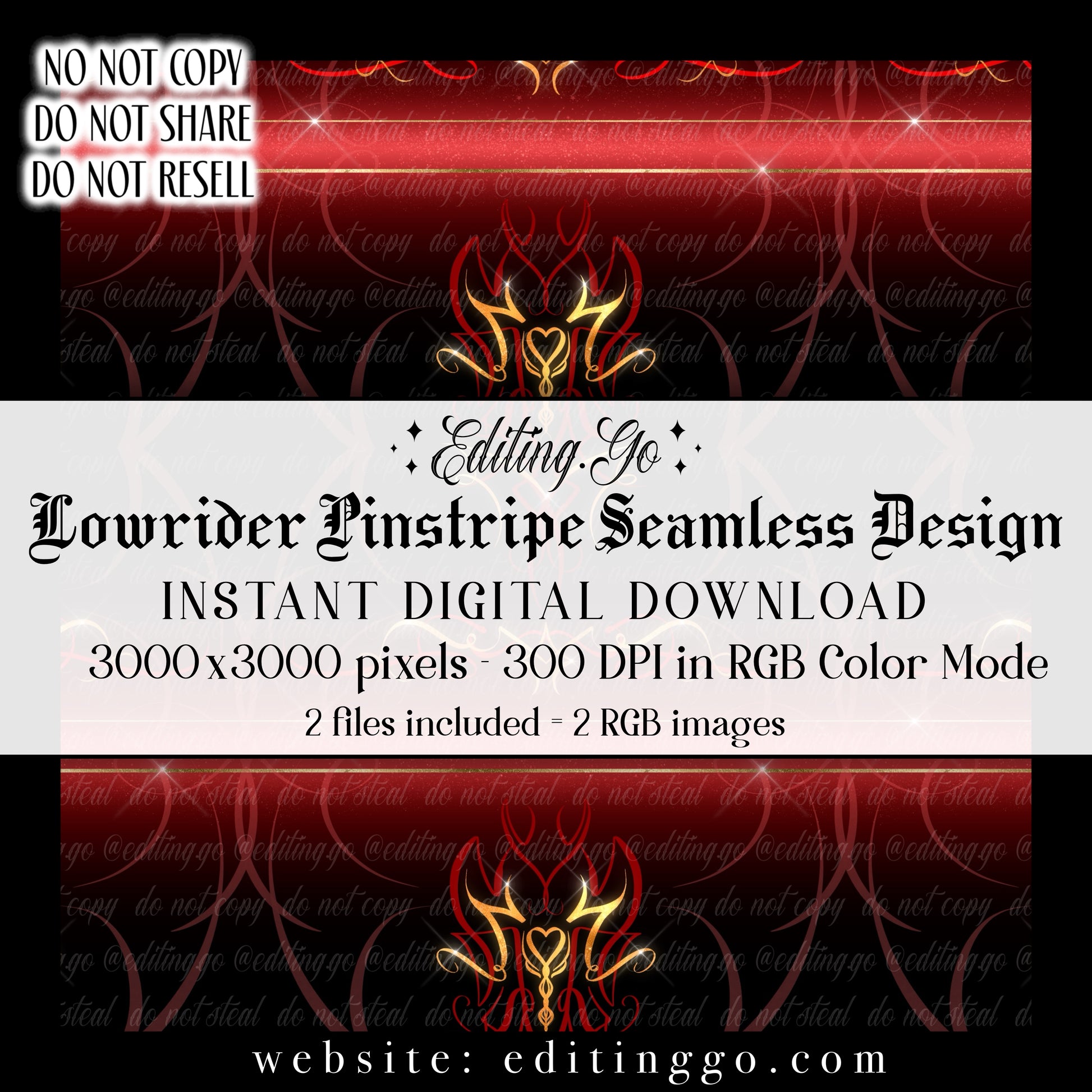 -Premade seamless designs will be resold to other customers by Editing.Go!