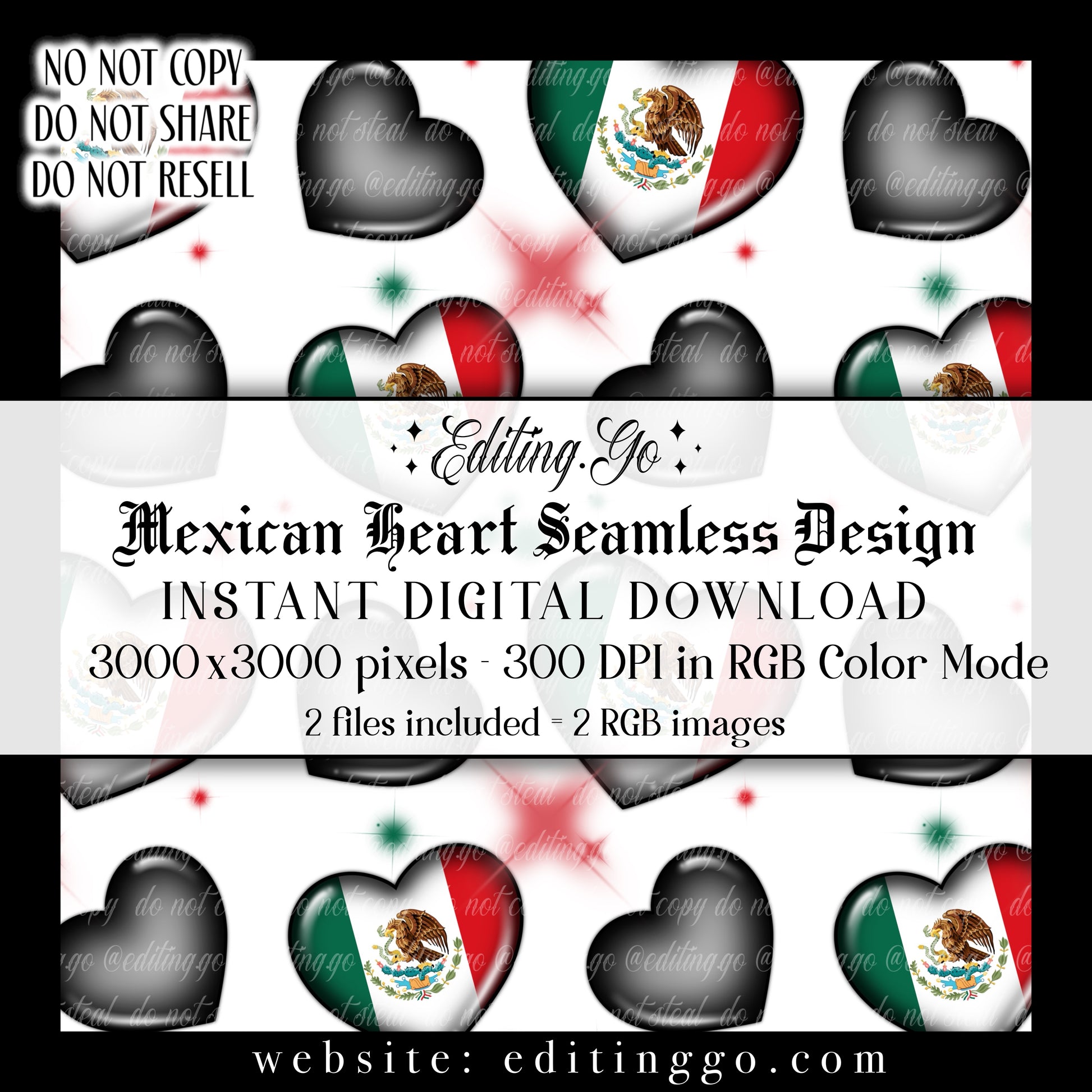 -Premade seamless designs will be resold to other customers by Editing.Go!