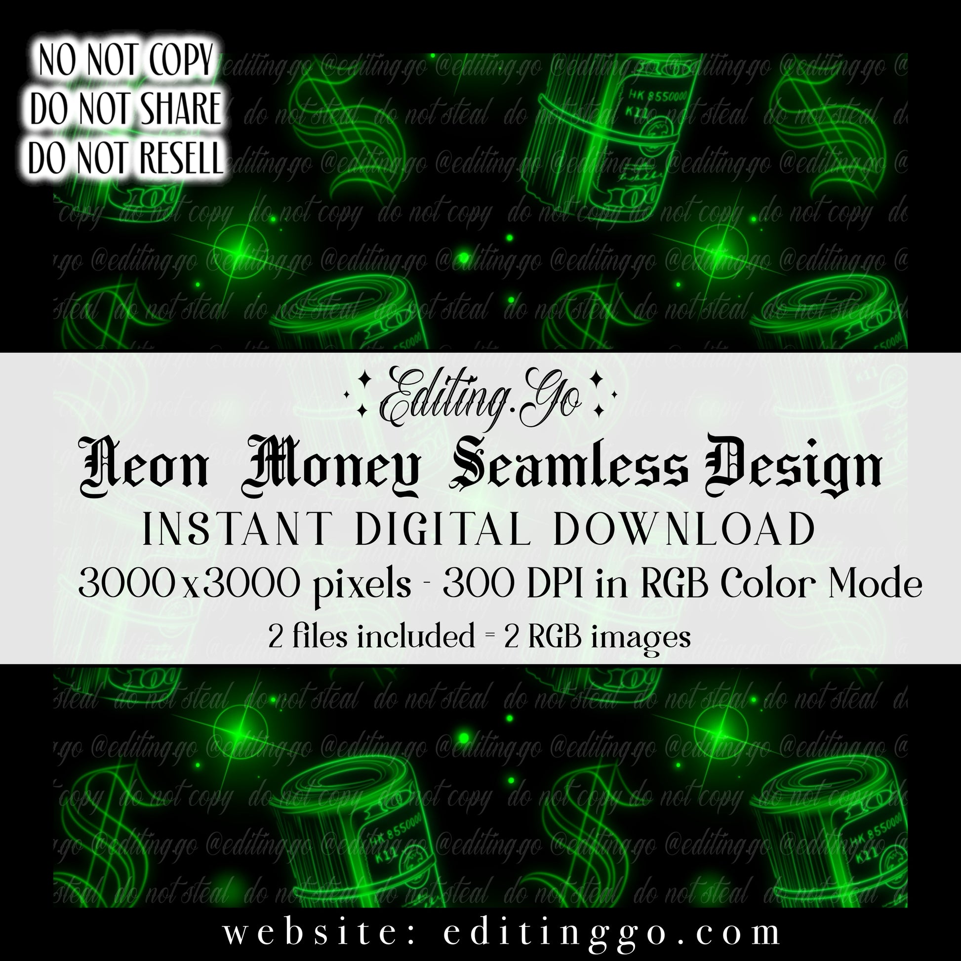 Y2k Airbrush Neon Money Signs Seamless Pattern Repeat Digital File: Perfect for fabric print, faux leather/canvas, paper crafts, scrapbooking printing, tumblr/tumblr wrap, tapestries/backdrops, notebook, party favors, and so much more! ✨