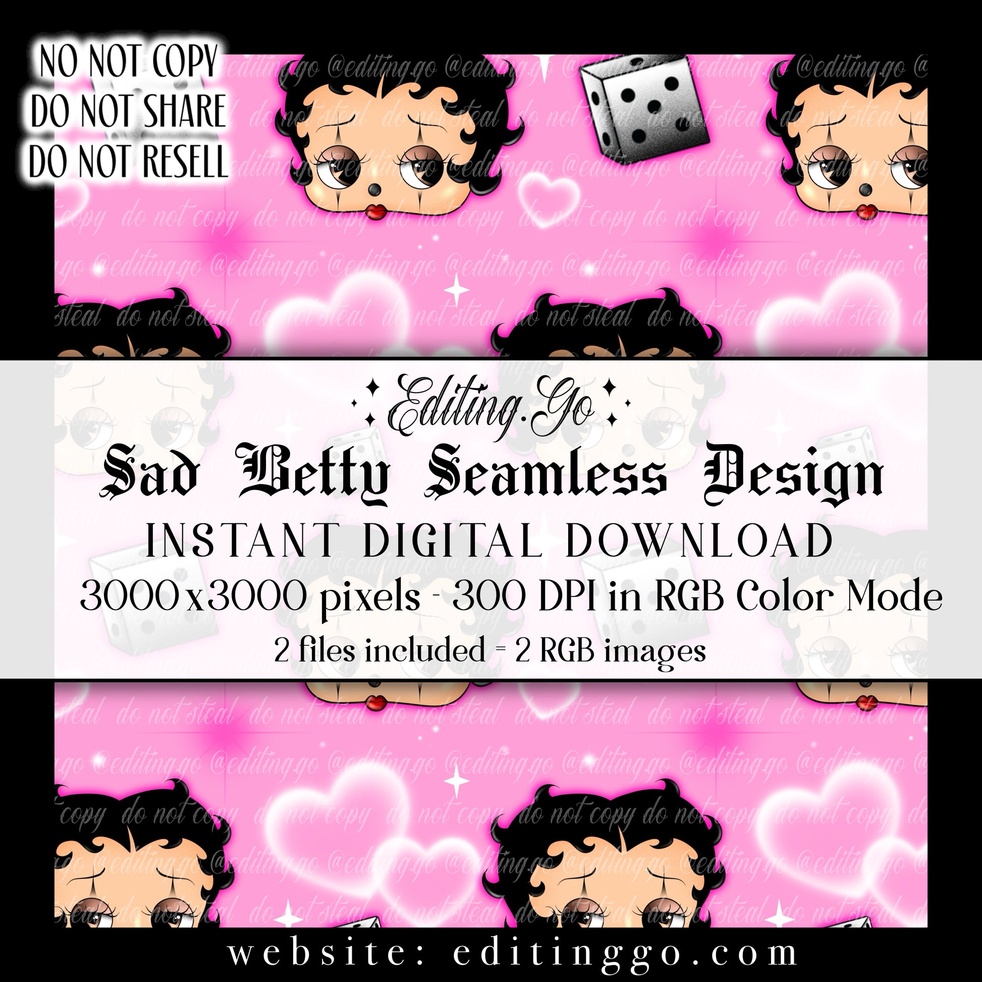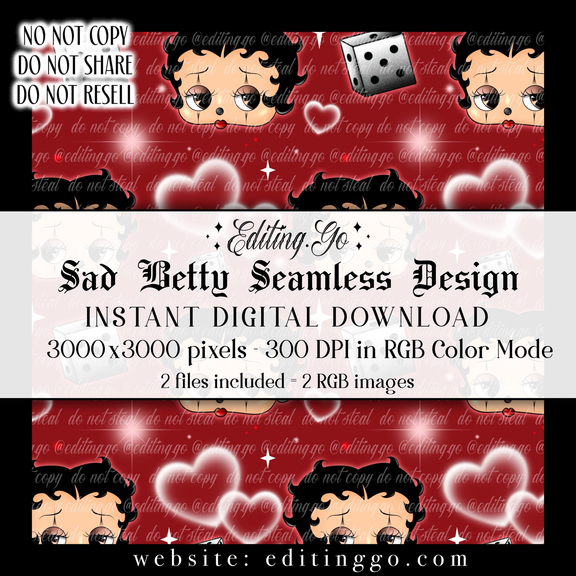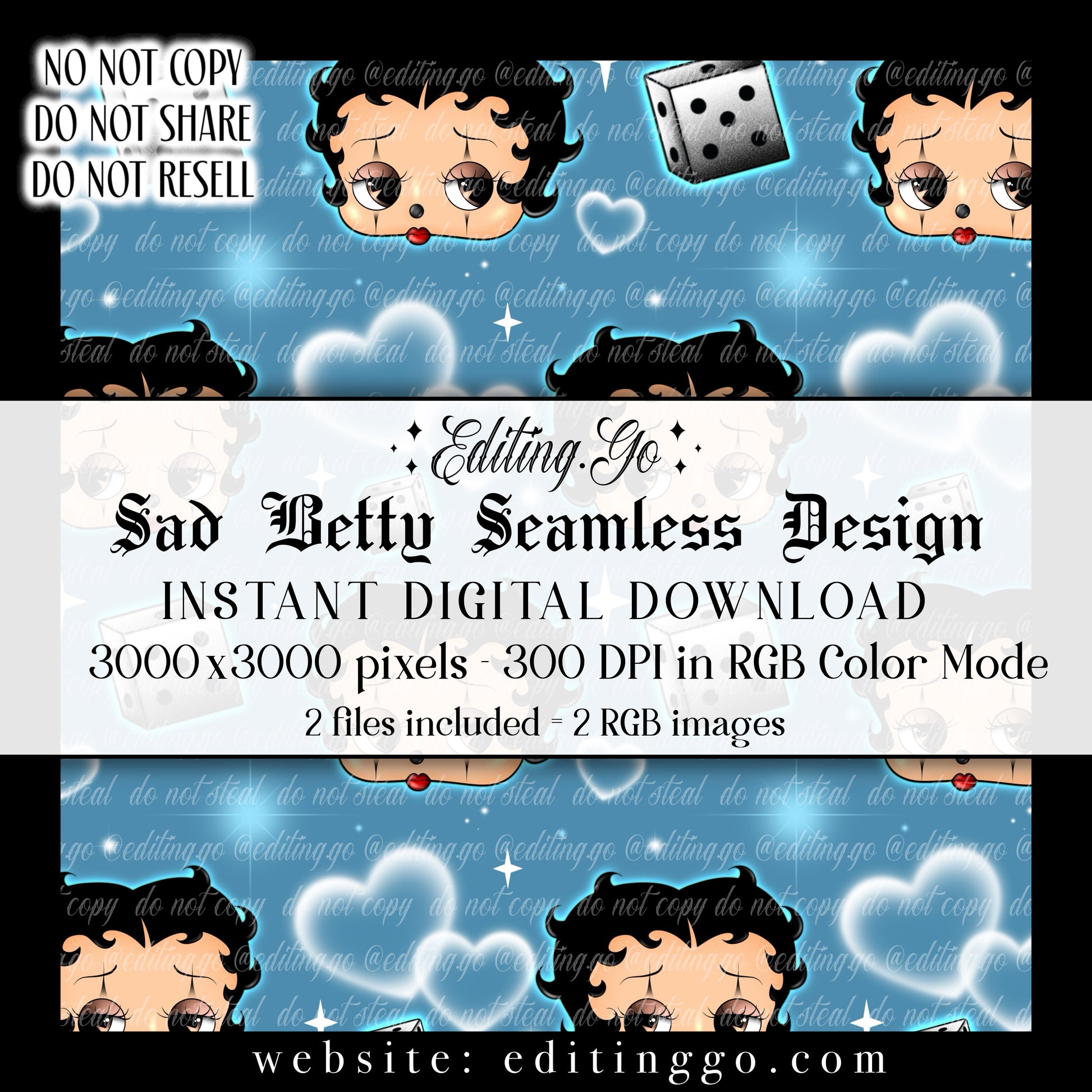 -Premade seamless designs will be resold to other customers by Editing.Go!