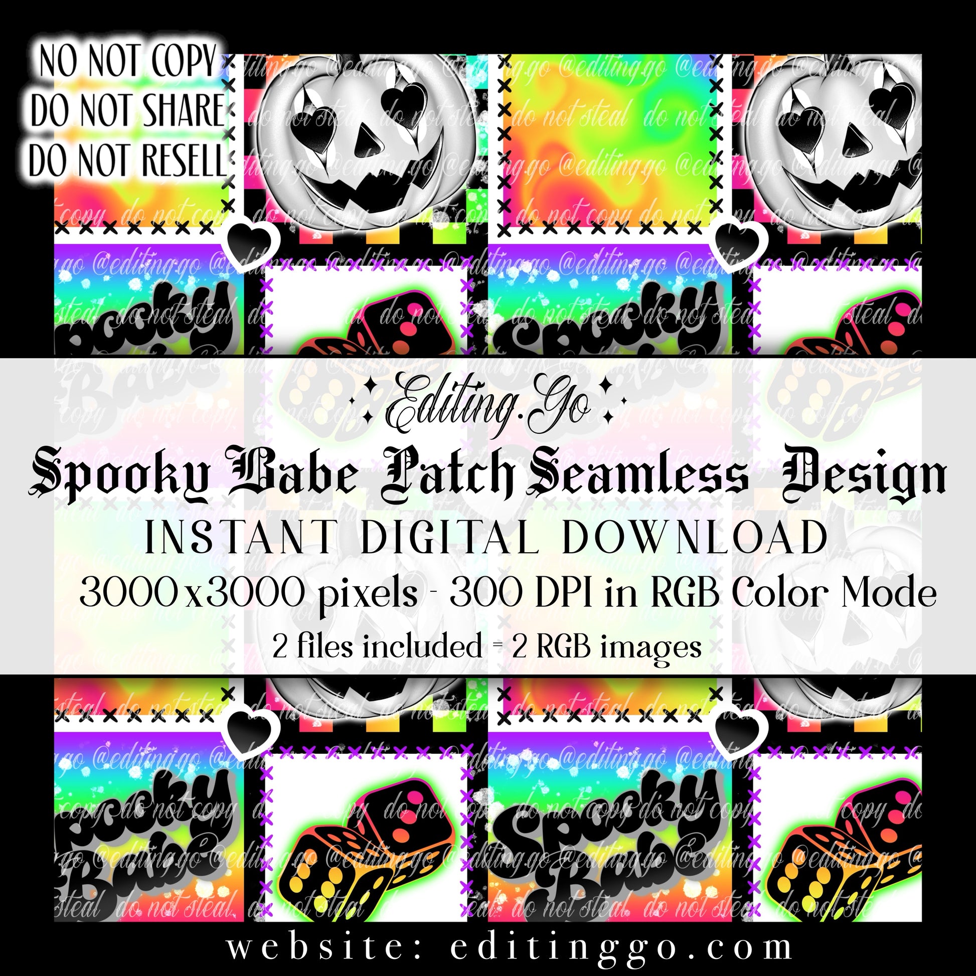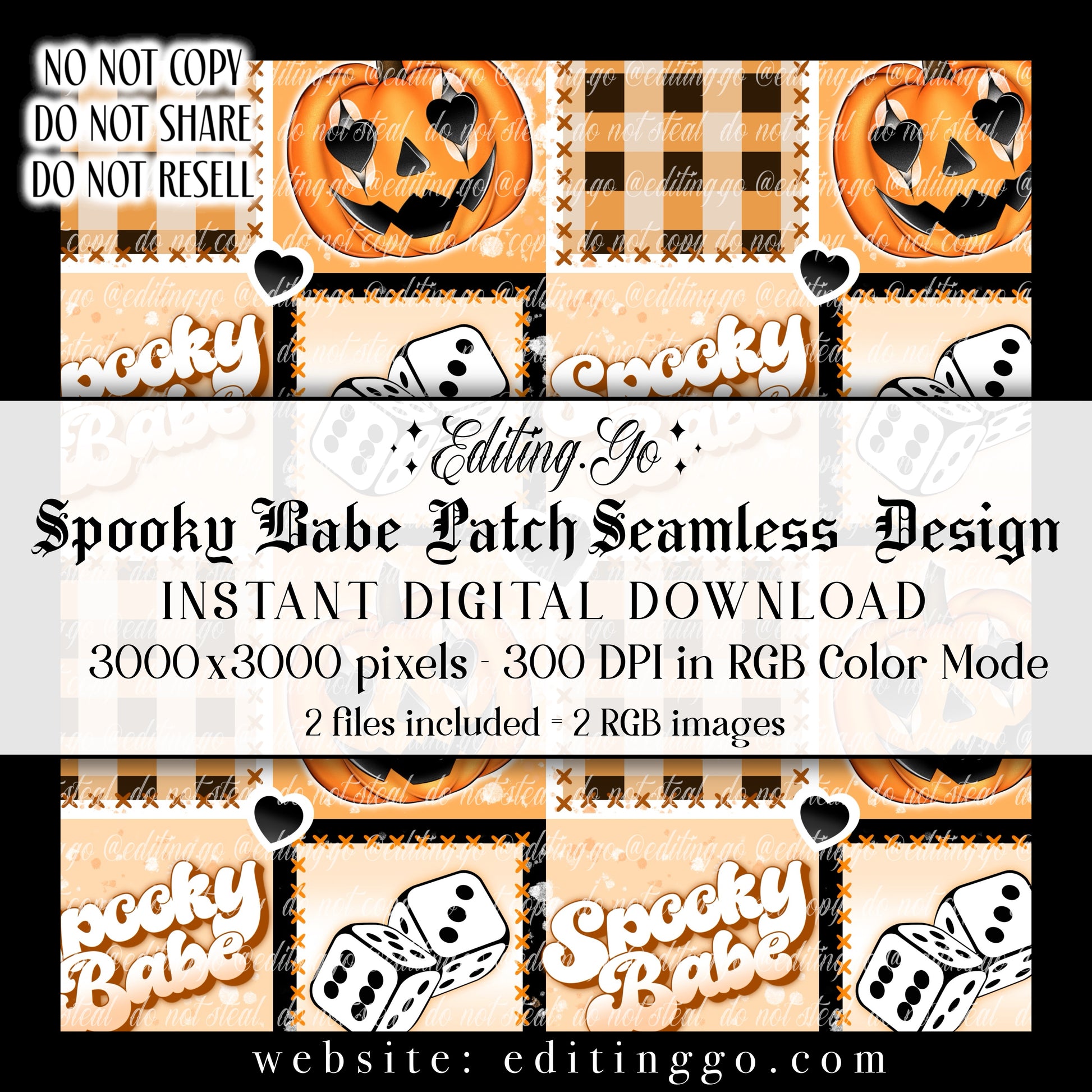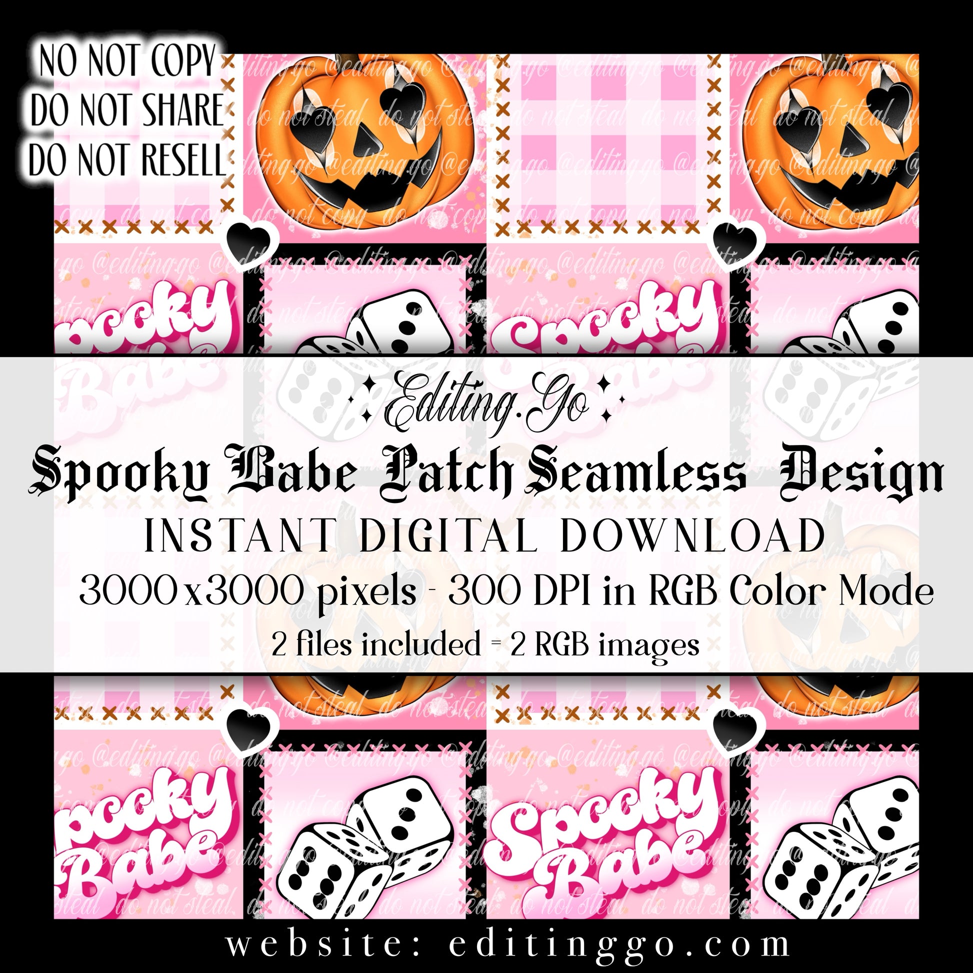 Spooky Babe Patchwork Seamless Pattern Repeat Digital File: Perfect for fabric print, faux leather/canvas, paper crafts, scrapbooking printing, tumblr/tumblr wrap, tapestries/backdrops, notebook, party favors, and so much more! ✨