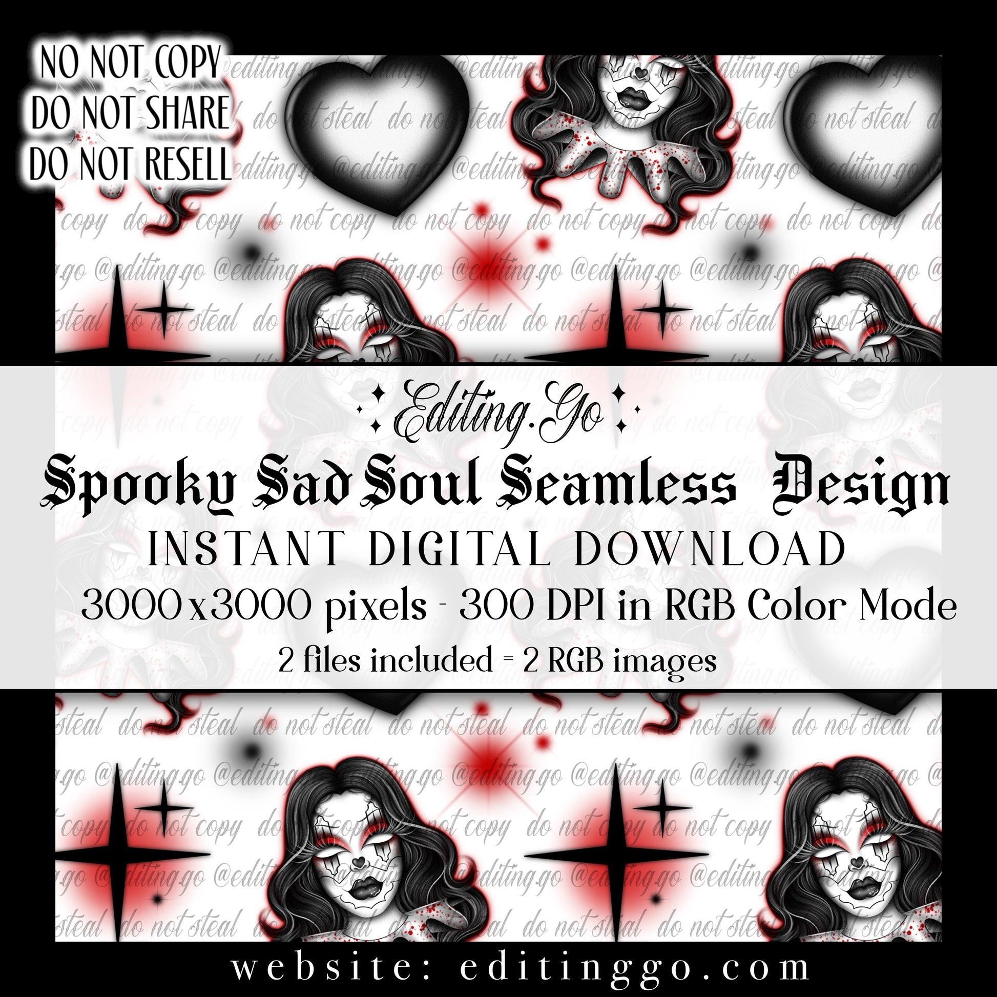 Spooky Sad Soul Seamless Pattern Repeat Digital File: Perfect for fabric, faux leather/canvas, paper crafts, scrapbooking printing, tumblr/tumblr wrap, tapestries/backdrops, notebook, parties, and so much more! ✨