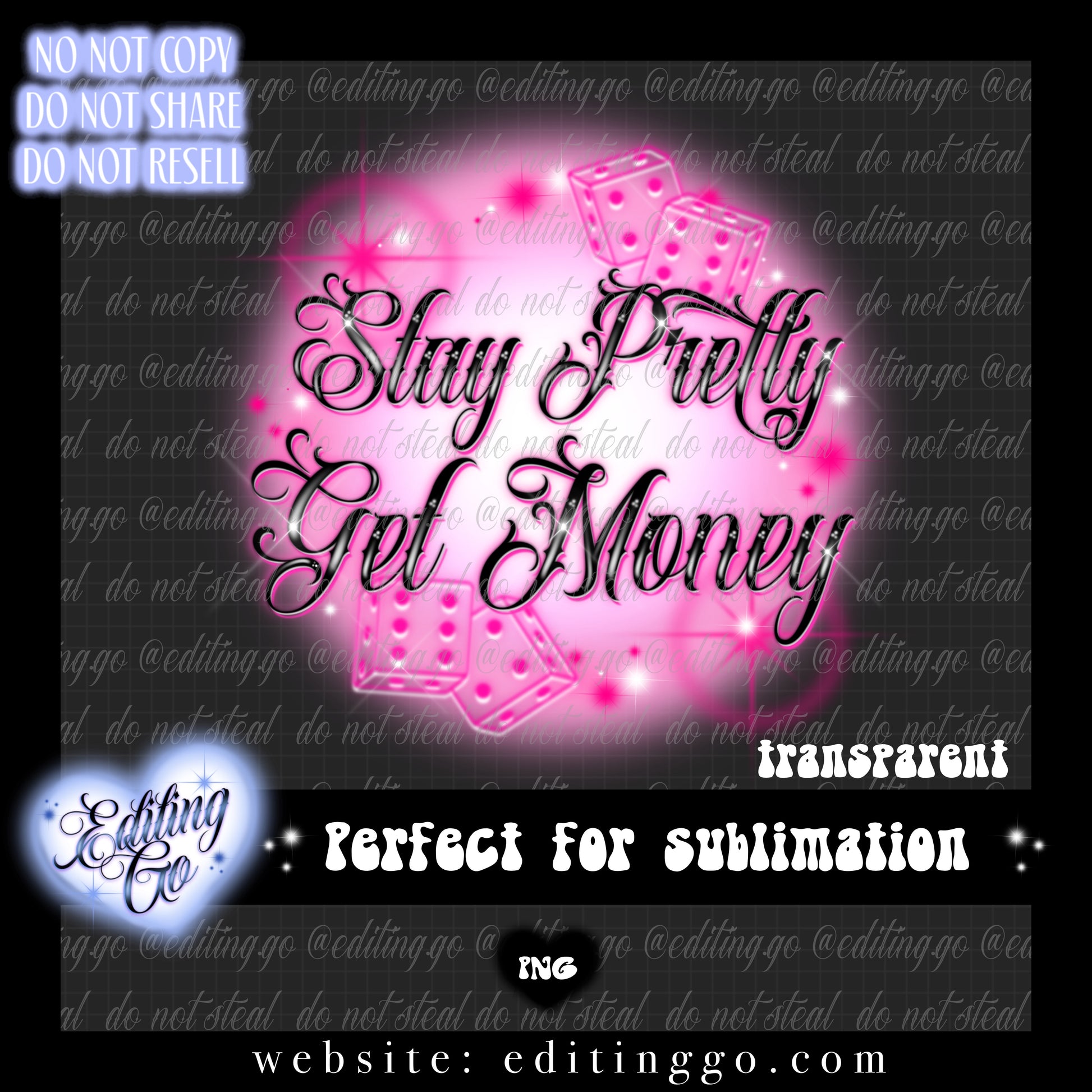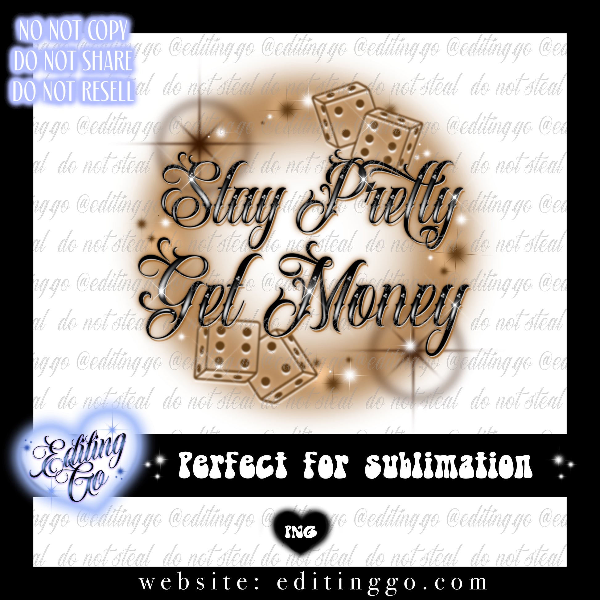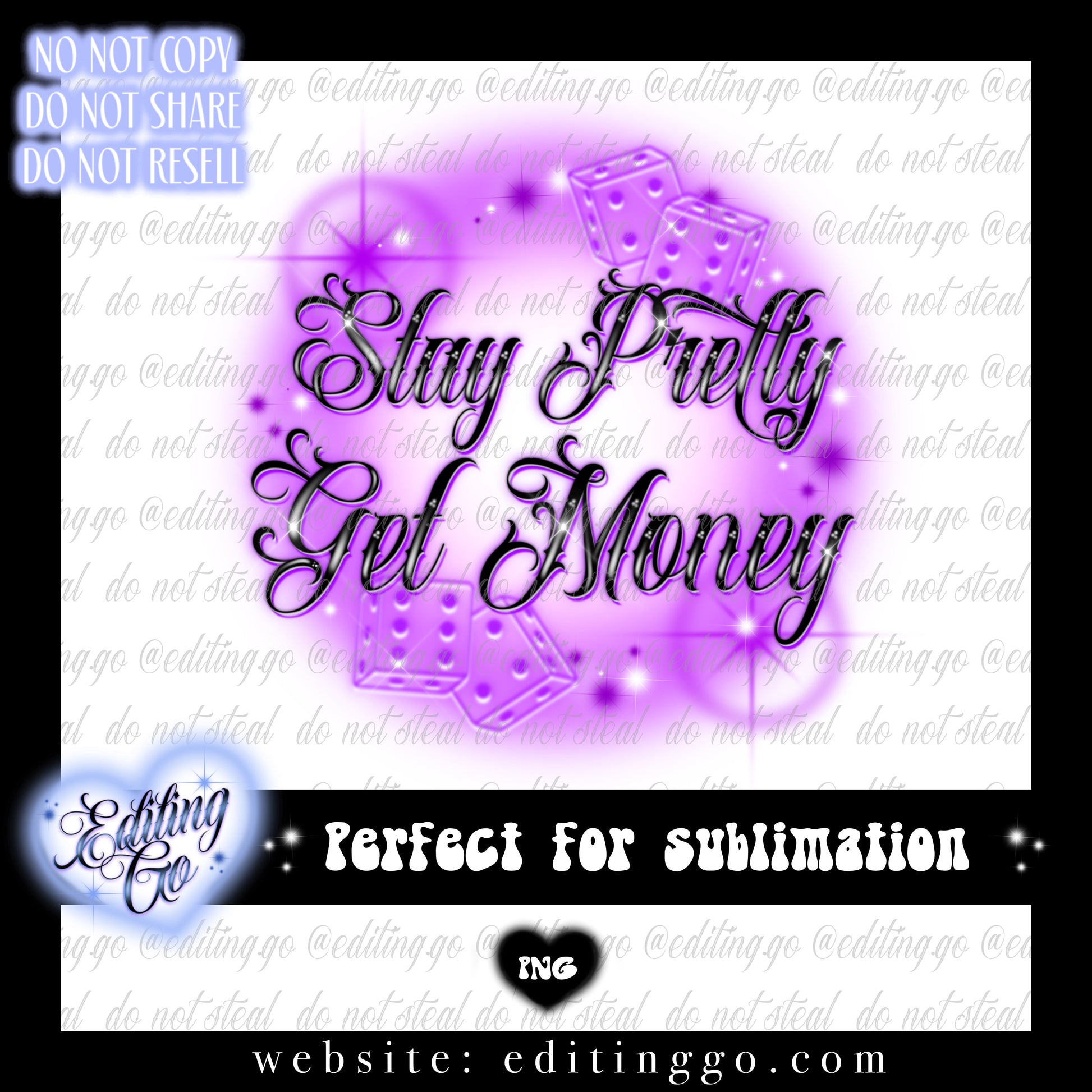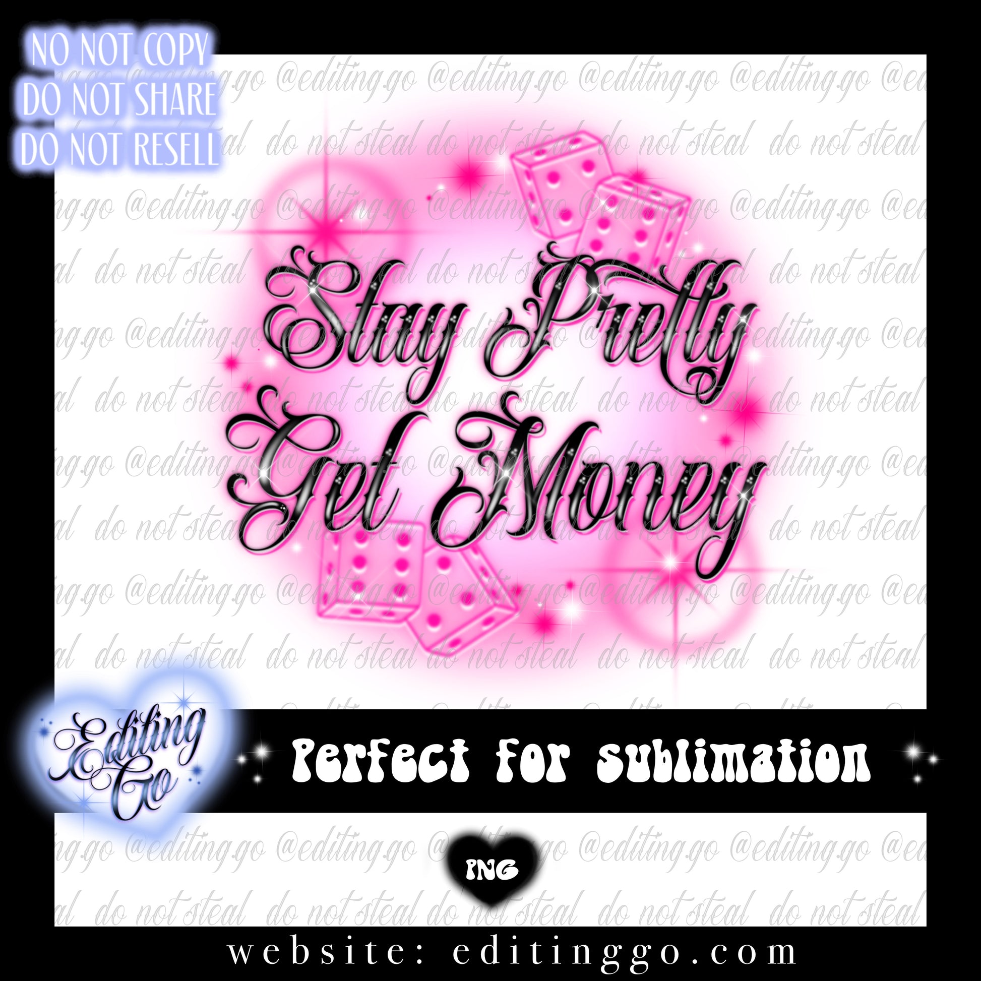 Stay Pretty Get Money airbrush design is perfect for your merchandise, tapestries, fabric, tshirts, hoodies, tumblers, totes, stickers, prints, or any other projects you can find for it!