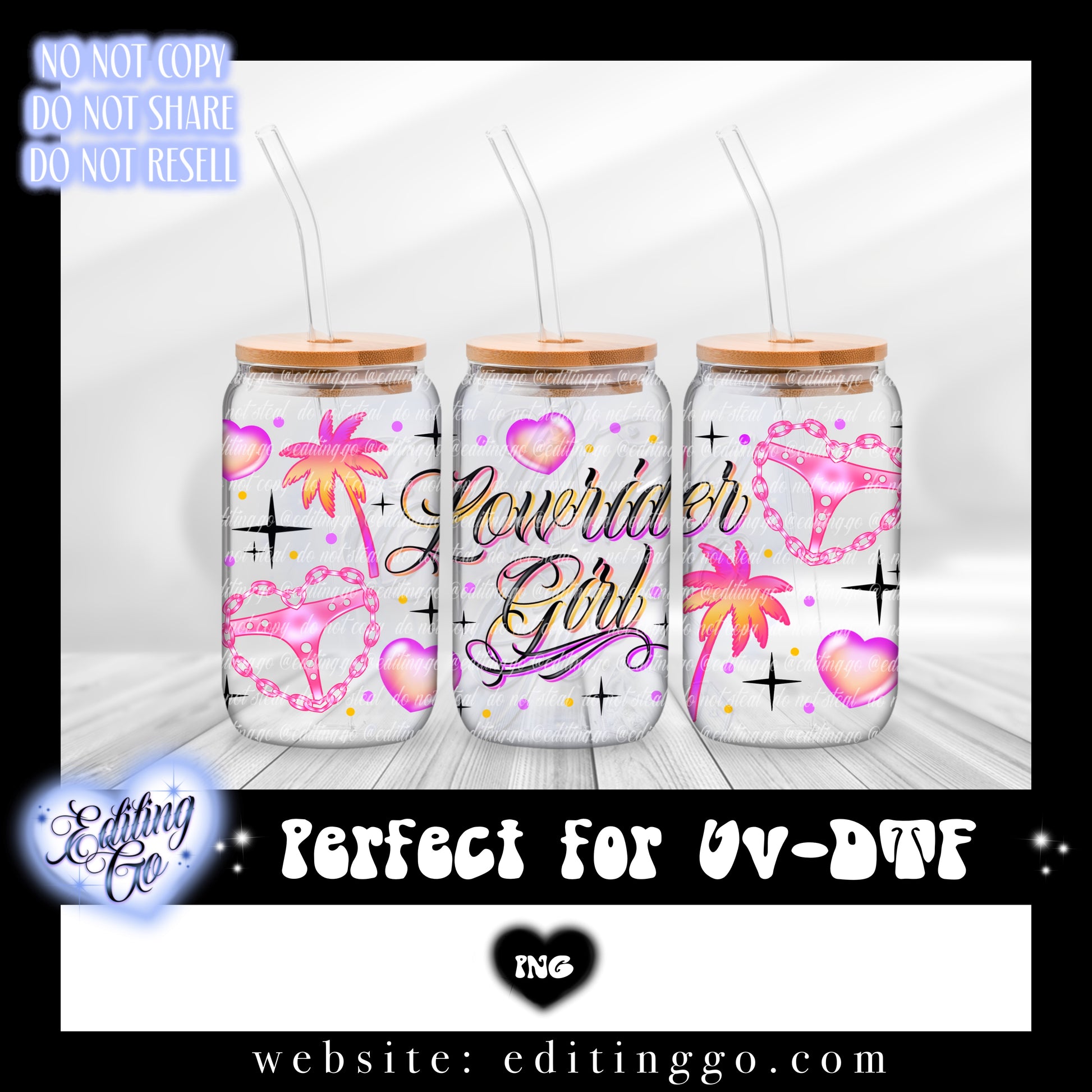 Lowrider Girl Wrap 16oz Wrap design is perfect for printing UV-DTF transfers or sublimation cup!