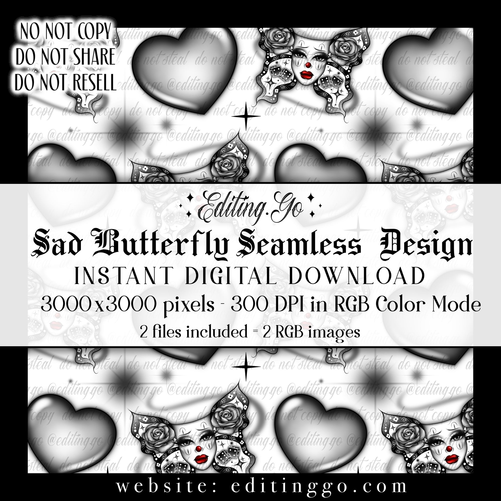 Sad Butterfly Seamless Pattern Repeat Digital File: Perfect for fabric, faux leather/canvas, paper crafts, scrapbooking printing, tumblr/tumblr wrap, tapestries/backdrops, notebook, parties, and so much more! ✨
