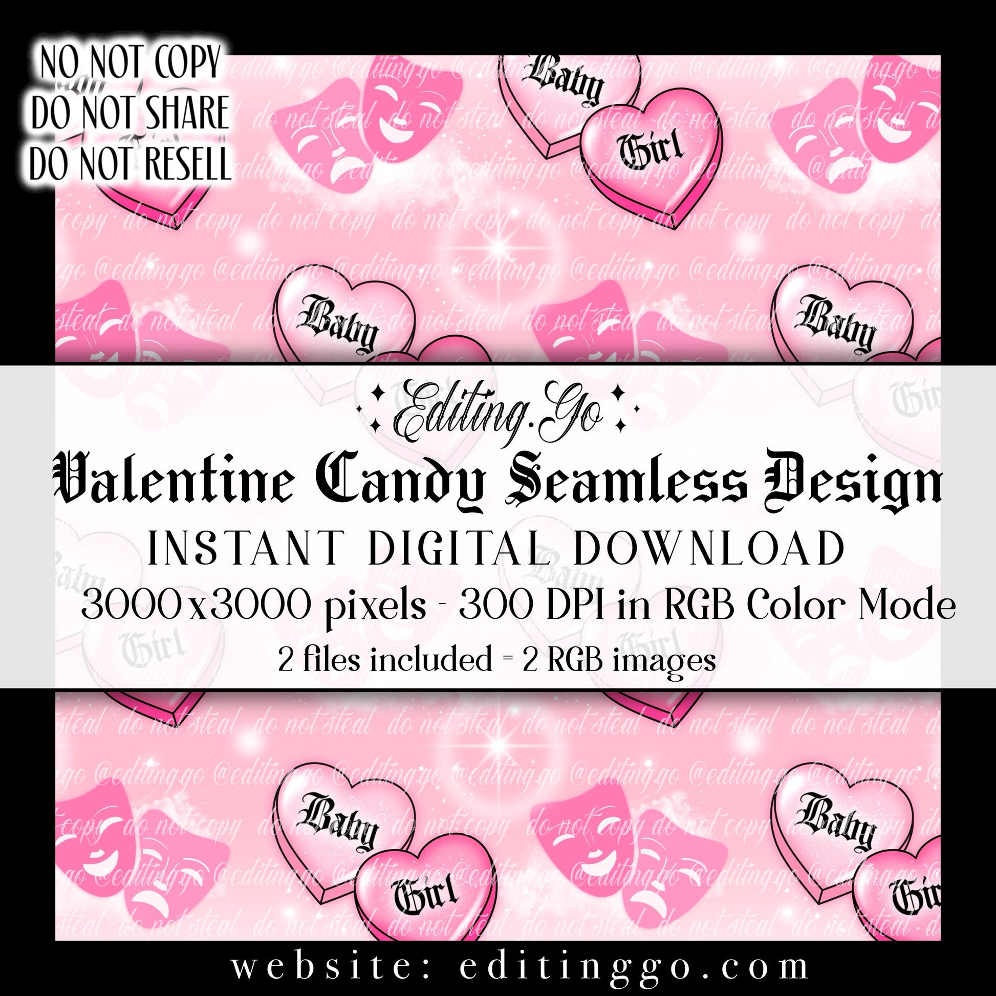 Valentine Candy Seamless Pattern Repeat Digital File: Perfect for fabric print, faux leather/canvas, paper crafts, scrapbooking printing, tumblr/tumblr wrap, tapestries/backdrops, notebook, party favors, and so much more! ✨