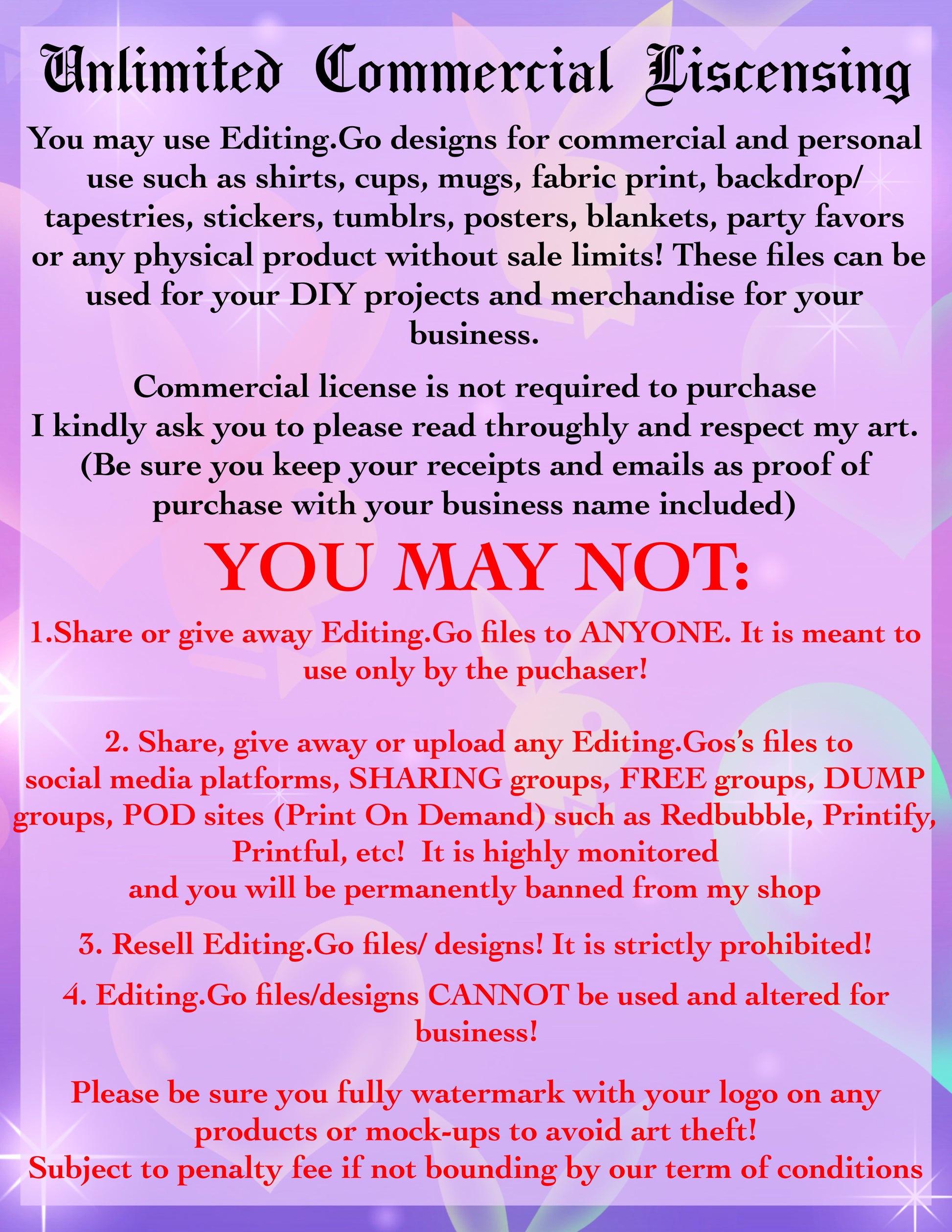 -All designs are copyright of Editing.Go. All copyrights and ownership of images and designs remains with EG at all times. Purchasing this file does not transfer copyright. Thank you so much for shopping with us!